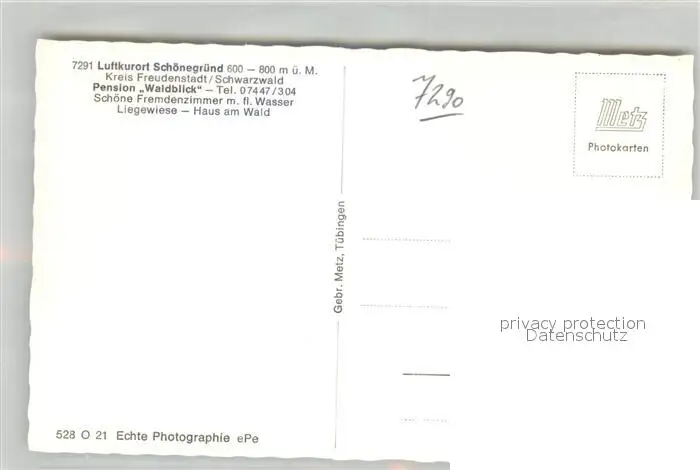 Schoenegruend Pension Waldblick Luftkurort im Schwarzwald Schoenegruend postalisch nicht gelaufen nach 1965 Erhaltung siehe scans [FriedD77] Frierer