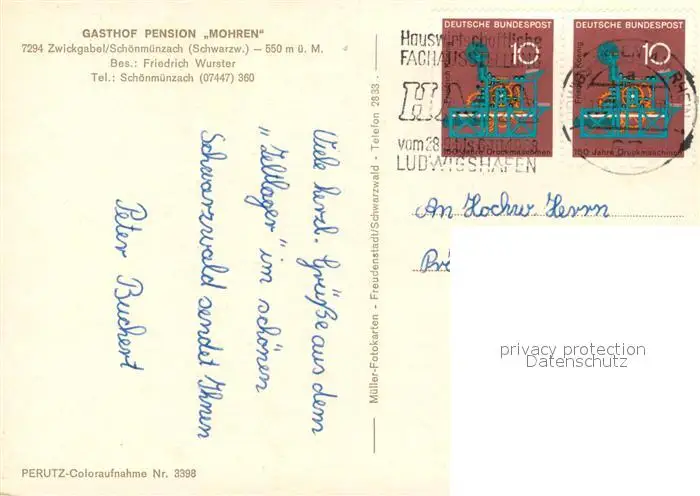 Schoenmuenzach Gasthof Pension Mohren Schoenmuenzach postalisch gelaufen nach 1965 Erhaltung siehe scans [WerneD78] WernPID7