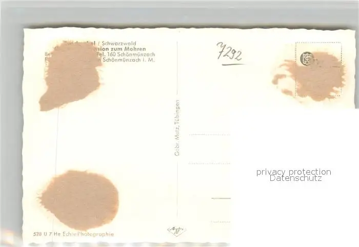 Schoenmuenzach Pension zum Mohren Schoenmuenzach postalisch nicht gelaufen 1921-1965 Erhaltung siehe scans [WerneD78] WernPID7