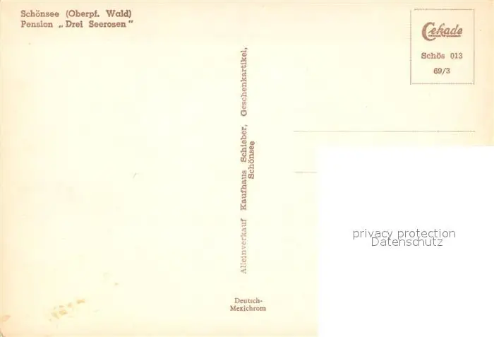 Schoensee Pension Drei Seerosen Schoensee postalisch nicht gelaufen 1969 Erhaltung siehe scans [FriedD77] Frierer