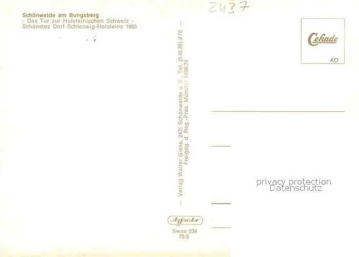 Schoenwalde_Bungsberg Tor zur Holsteinischen Schweiz Fliegeraufnahme Schoenwalde Bungsberg postalisch nicht gelaufen 1975 Erhaltung siehe scans [FriedD77] Frierer