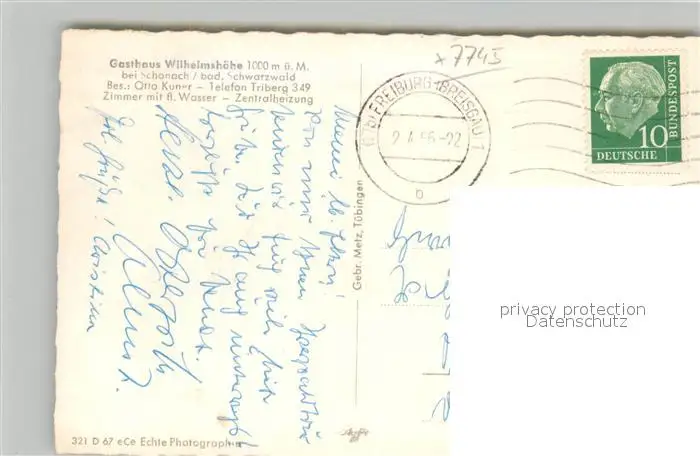 Schonach_Schwarzwald Gasthaus Wilhelmshöhe Schonach Schwarzwald postalisch gelaufen 1956 Erhaltung siehe scans [KathaD81] Kathoren