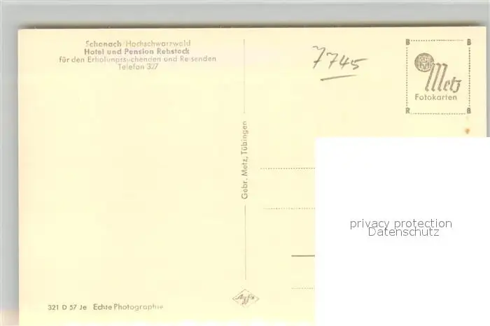 Schonach_Schwarzwald Hotel Pension Rebstock Schonach Schwarzwald postalisch nicht gelaufen 1921-1965 Erhaltung siehe scans [KathaD81] Kathoren