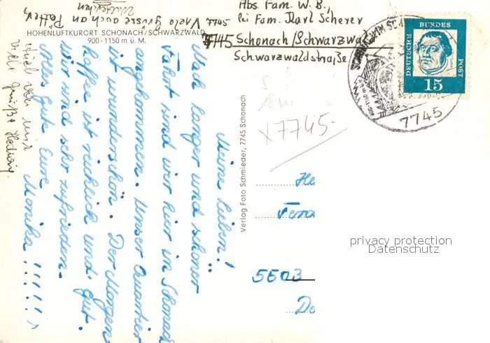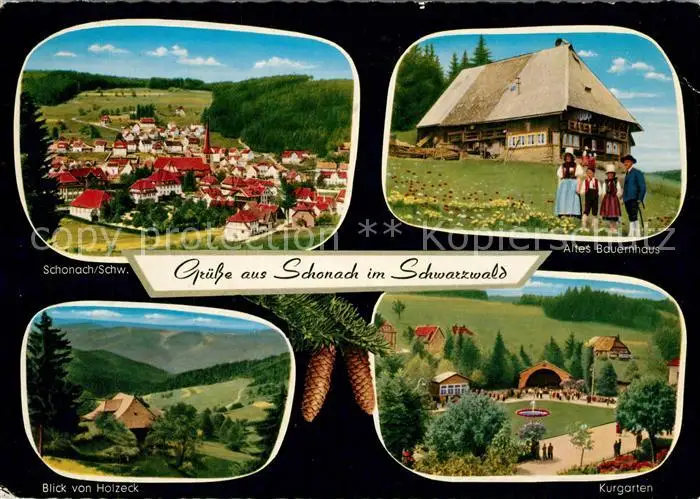 Schonach_Schwarzwald Panorama Altes Bauernhaus Kurgarten Schonach Schwarzwald postalisch gelaufen nach 1965 Erhaltung siehe scans [KathaD81] Kathoren