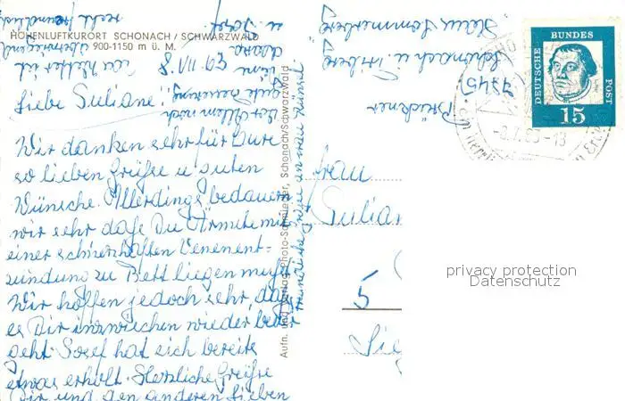 Schonach_Schwarzwald Paradies Schonach Schwarzwald postalisch gelaufen 1963 Erhaltung siehe scans [KathaD81] Kathoren
