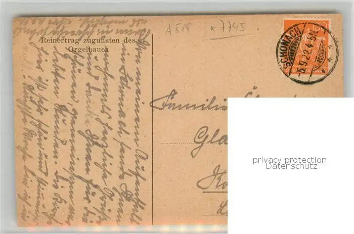 Schonach_Schwarzwald Pfarrkirche Schonach Schwarzwald postalisch gelaufen 1922 Erhaltung siehe scans [KathaD81] Kathoren