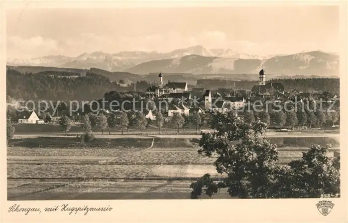 Schongau Gesamtansicht mit Blick zum Zugspitzmassiv Wettersteingebirge Schongau postalisch gelaufen 1921-1965 Erhaltung siehe scans [FriedD77] Frierer