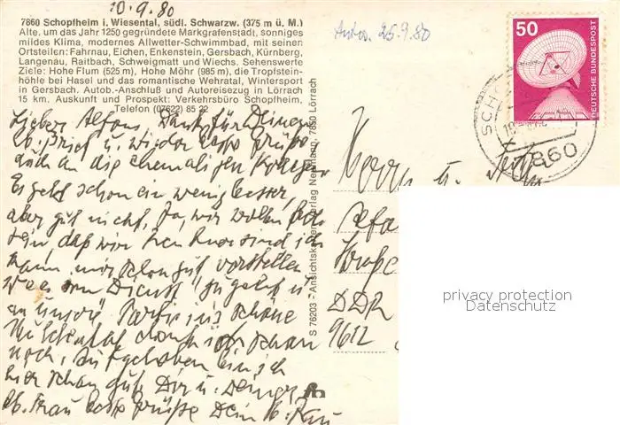 Schopfheim im Wiesental Schopfheim postalisch gelaufen 1980 Erhaltung siehe scans [LiesaD40] LiesID40