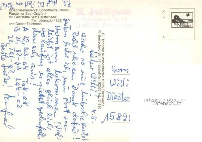 Schorfheide Chorin Parsteiner See Gaststaette Am Parsteinsee und Gelber Teichrose Schorfheide postalisch nicht gelaufen nach 1965 Erhaltung siehe scans [FriedD77] Frierer