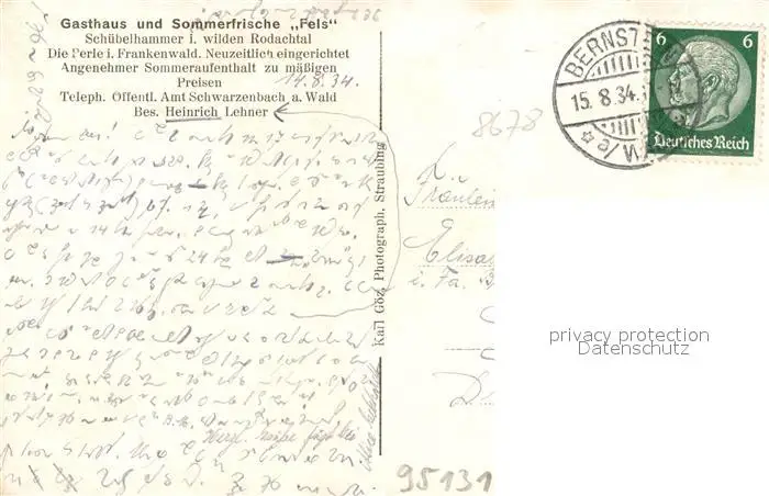 Schuebelhammer Gasthaus Fels Schuebelhammer postalisch gelaufen 1934 Erhaltung siehe scans [KathaD81] Kathoren