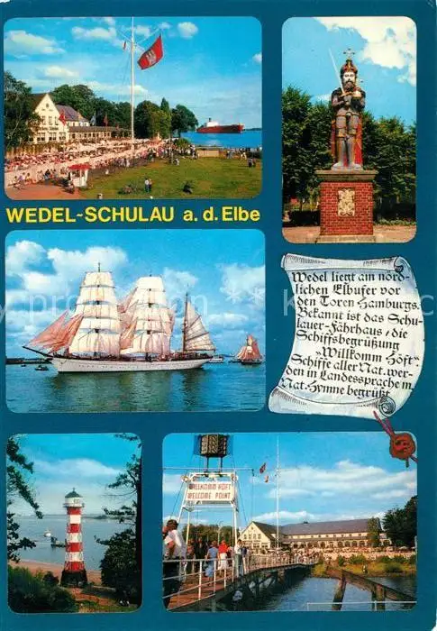 Schulau_Wedel Schulauer Faehrhaus Willkomm Hoeft Elbepartie Dreimaster Segelschiff Leuchtturm Schulau_Wedel postalisch nicht gelaufen nach 1965 Erhaltung siehe scans [WerneD78] WernPID7