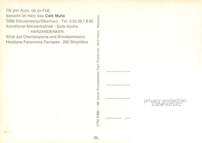 Schulenberg_Oberharz Cafe Muhs Schulenberg_Oberharz postalisch nicht gelaufen nach 1965 Erhaltung siehe scans [KathaD81] Kathoren