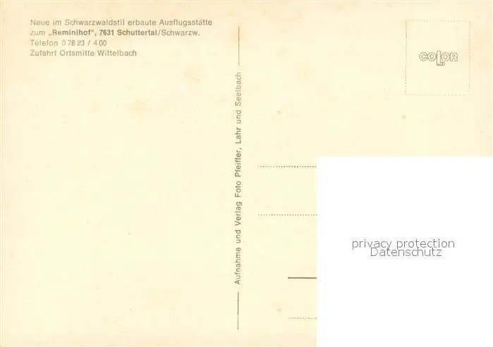 Schuttertal Ausflugsgaststaette zum Reminihof Schuttertal postalisch nicht gelaufen nach 1965 Erhaltung siehe scans [FriedD77] Frierer