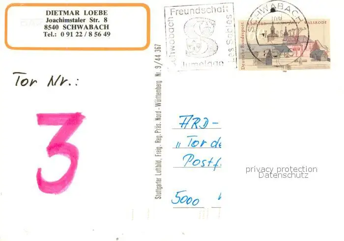 Schwabach Fliegeraufnahme Schwabach postalisch gelaufen nach 1965 Erhaltung siehe scans [KathaD81] Kathoren