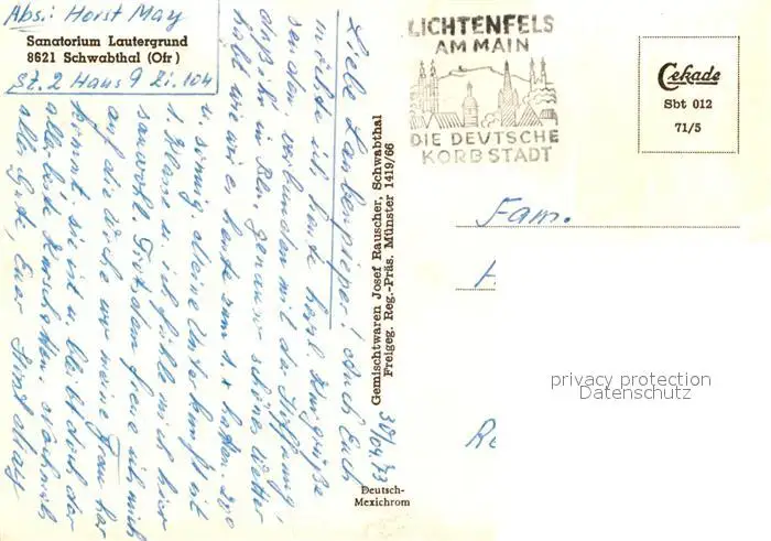 Schwabthal Sanatorium Lautergrund Schwabthal postalisch nicht gelaufen 1973 Erhaltung siehe scans [PaolaD17] PaolPID1