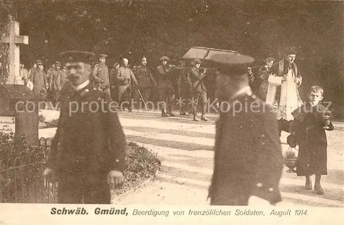 Schwaebisch Gmuend Kategorie Alte Ansichtskarten Postkarten bx56157 Schwaebisch_Gmuend Beerdigung von franzoesischen Soldaten Schwaebisch Gmuend postalisch nicht gelaufen 1914 Erhaltung siehe scans [NatalD47]