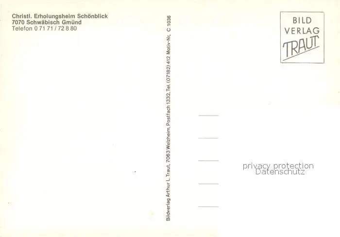 Schwaebisch_Gmuend Christl Erholungsheim Schoenblick Schwaebisch Gmuend postalisch nicht gelaufen nach 1965 Erhaltung siehe scans [WerneD78] WernPID7