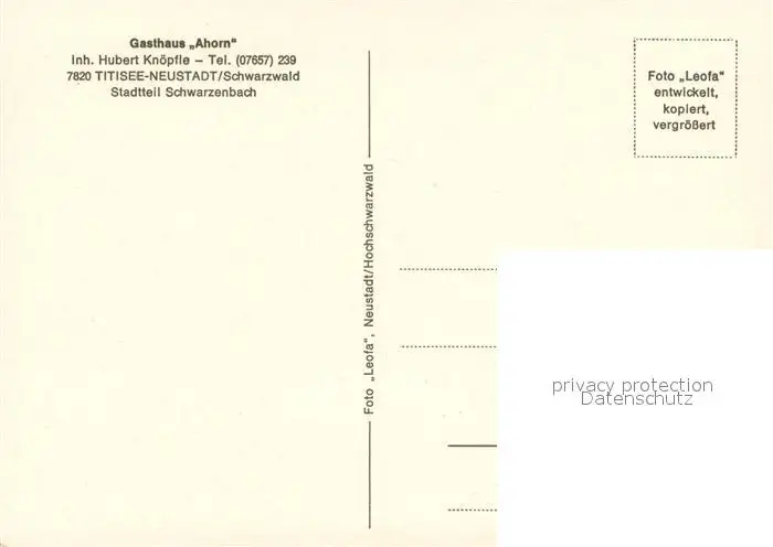 Schwaerzenbach_Titisee-Neustadt Gasthaus Ahorn Schwaerzenbach postalisch nicht gelaufen nach 1965 Erhaltung siehe scans [LiesaD40] LiesID40