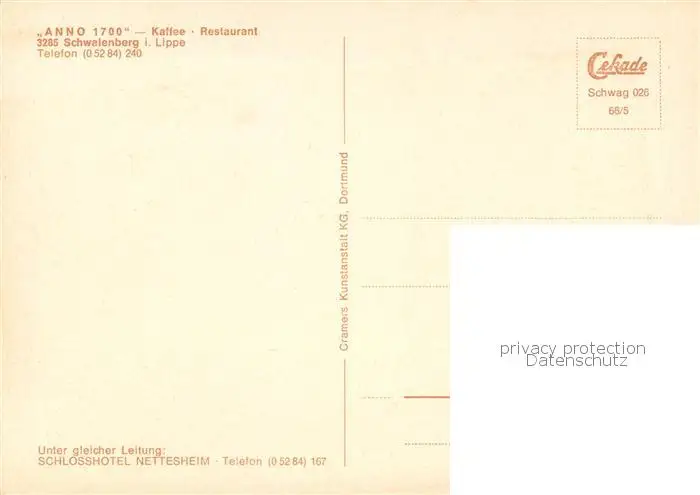 Schwalenberg Anno 1700 Kaffee Restaurant Schwalenberg postalisch nicht gelaufen nach 1965 Erhaltung siehe scans [FriedD77] Frierer