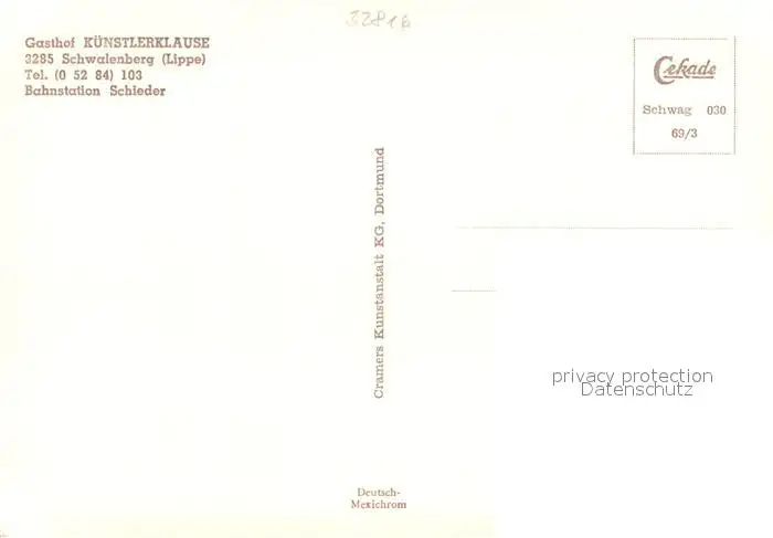 Schwalenberg Gasthof Kuenstlerklause Schwalenberg postalisch nicht gelaufen nach 1965 Erhaltung siehe scans [WerneD78] WernPID7