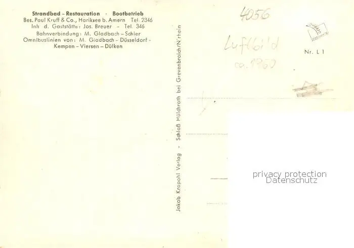 Schwalmtal_Niederrhein Fliegeraufnahme Hariksee Schwalmtal Niederrhein postalisch nicht gelaufen 1960 Erhaltung siehe scans [LiesaD40] LiesID40