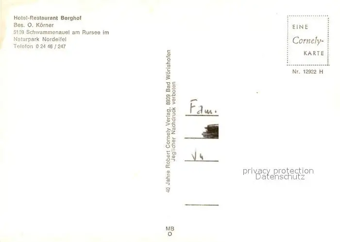 Schwammenauel_Heimbach Hotel Restaurant Berghof am Rursee Fliegeraufnahmen postalisch nicht gelaufen nach 1965 Erhaltung siehe scans [WerneD78] WernPID7