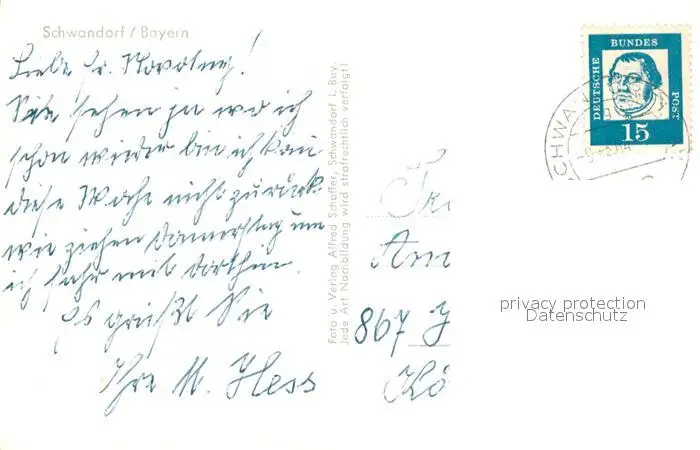 Schwandorf Blasturm Marktplatz Kreuzberg Schwandorf postalisch gelaufen 1921-1965 Erhaltung siehe scans [NatalD47] NataID47
