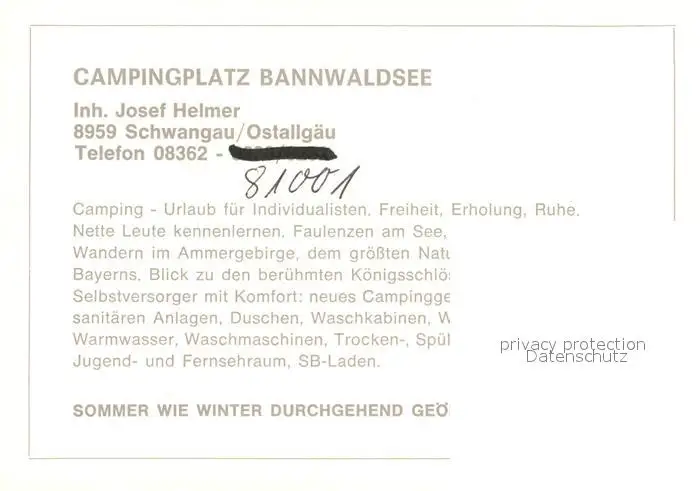 Schwangau Campingplatz am Bannwaldsee Bergbahn Alpenpanorama Schloss Fliegeraufnahme Schwangau postalisch nicht gelaufen nach 1965 Werbekarte (keine Postkarte) Erhaltung siehe scans [FriedD77] Werbekarte (keine Postkarte) Frierer