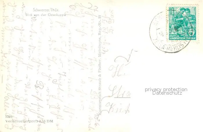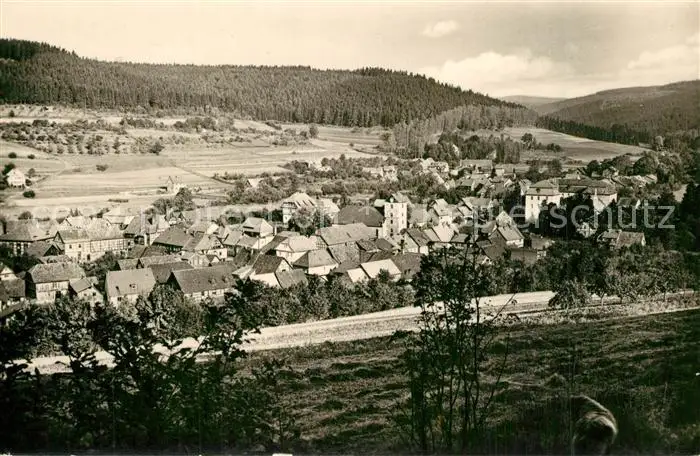 Schwarza_Thueringer_Wald Panorama Blick von der Osterkuppe Schwarza_Thueringer_Wald postalisch gelaufen 1960 Erhaltung siehe scans [FriedD77] Frierer