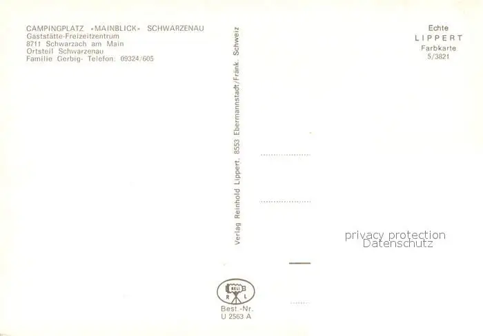 Schwarzach_Main Campingplatz Mainblick Schwarzenau Gaststaette Freizeitzentrum Schwarzach Main postalisch nicht gelaufen nach 1965 Erhaltung siehe scans [FriedD77] Frierer