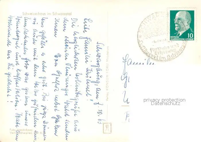 Schwarzatal Schweizerhaus Schwarzatal postalisch gelaufen 1963 Erhaltung siehe scans [WerneD78] WernPID7