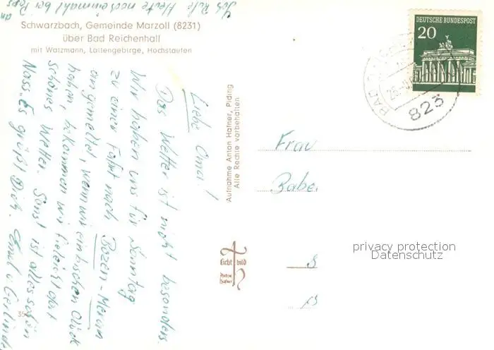 Schwarzbach_Bad_Reichenhall Panorama mit Watzmann und Lattengebirge Euderheu Hochstaufen Ortspartie Schwarzbach_Bad postalisch gelaufen 1968 Erhaltung siehe scans [WerneD78] WernPID7