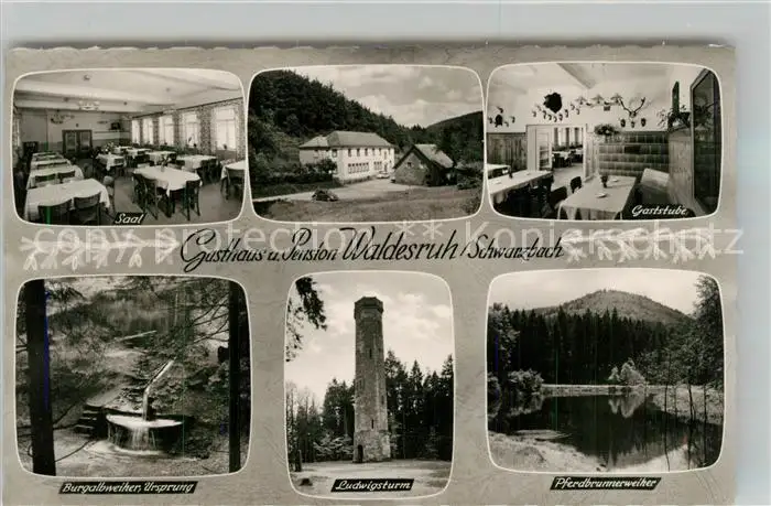 AK / Ansichtskarte Schwarzbach_Johanniskreuz Saal Gaststube Burgalbweiher Ludwigsturm Pferdbrunnerweiher Schwarzbach Johanniskreuz