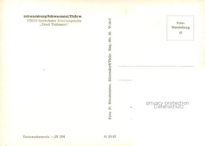 Schwarzburg_Thueringer_Wald FDGB Reichsbahn Erholungsheim Ernst Thaelmann Schwarzburg_Thueringer postalisch nicht gelaufen 1921-1965 Erhaltung siehe scans [WerneD78] WernPID7