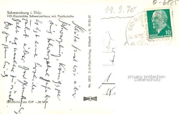 Schwarzburg_Thueringer_Wald HO Gaststaette Schweizerhaus Postkutsche Schwarzburg_Thueringer postalisch gelaufen 1970 Erhaltung siehe scans [KathaD81] Kathoren