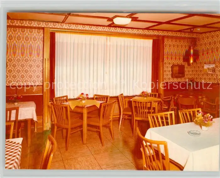 Schwarzenau_Eder Gasthof Kussel Restaurant Gastraum Schwarzenau Eder postalisch nicht gelaufen 1978 Verlagsrohabzug (keine Postkartenrueckseite) Erhaltung siehe scans [FriedD77] Verlagsrohabzug (keine Postkartenrueckseite) Frierer