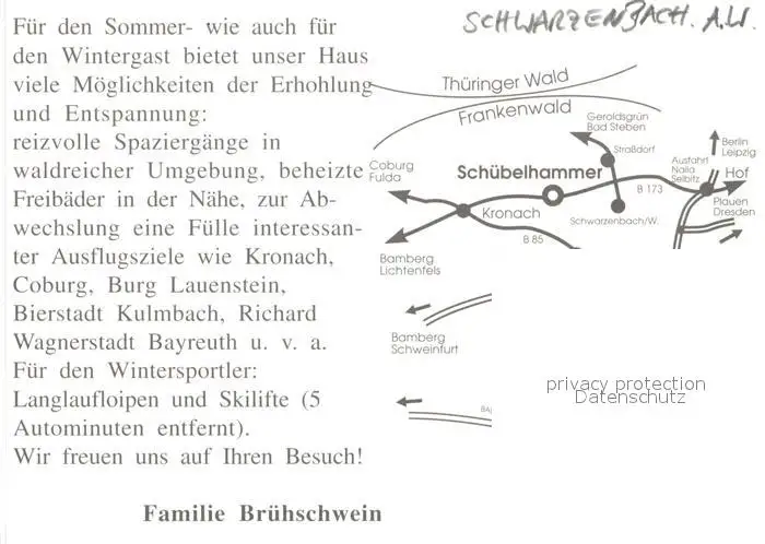 Schwarzenbach_Wald Gasthof Pension Zur Muehle Garten Hallenbad Schwarzenbach Wald postalisch nicht gelaufen nach 1965 Werbekarte (keine Postkarte) Erhaltung siehe scans [FriedD77] Werbekarte (keine Postkarte) Frierer