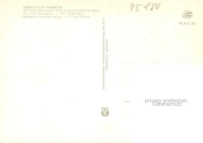 Schwarzenbach_Wald Gasthof zum Zegasttal Gottmannsgruen Schwarzenbach Wald postalisch nicht gelaufen nach 1965 Erhaltung siehe scans [WerneD78] WernPID7