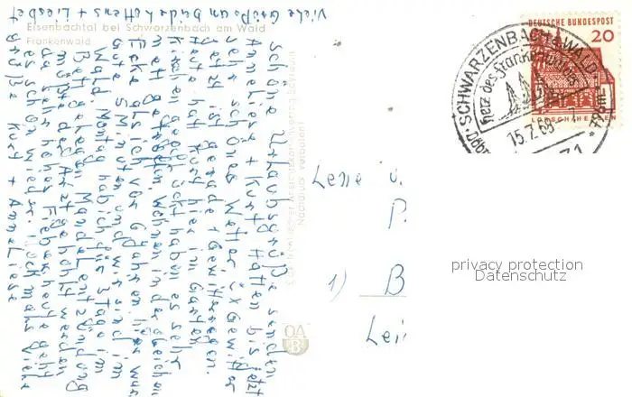 Schwarzenbach_Wald Partie im Eisenbachtal Schwarzenbach Wald postalisch gelaufen 1968 Erhaltung siehe scans [WerneD78] WernPID7