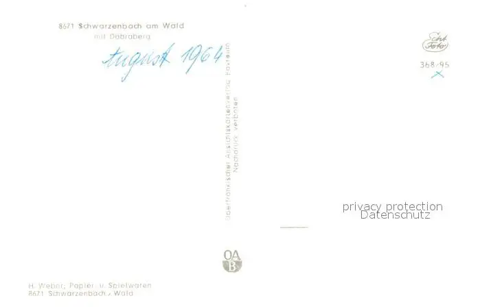 Schwarzenbach_Wald mit Dobraberg Schwarzenbach Wald postalisch nicht gelaufen 1964 Erhaltung siehe scans [WerneD78] WernPID7