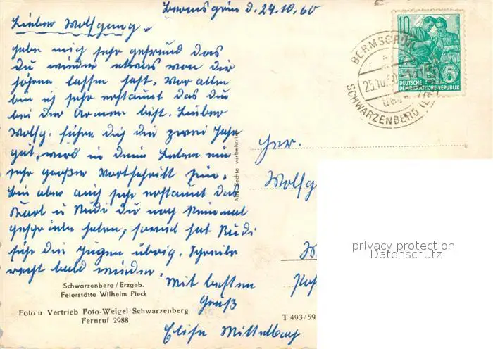 Schwarzenberg_Erzgebirge Feierstaette Wilhelm Pieck Schwarzenberg Erzgebirge postalisch gelaufen 1960 Erhaltung siehe scans [WerneD78] WernPID7