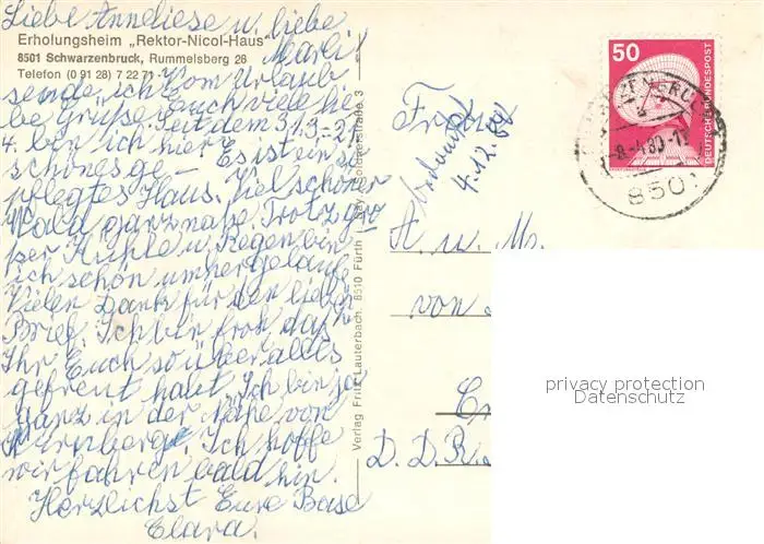 Schwarzenbruck Erholungsheim Rummelsberg Gastraum Schwarzenbruck postalisch gelaufen 1980 Erhaltung siehe scans [WerneD78] WernPID7