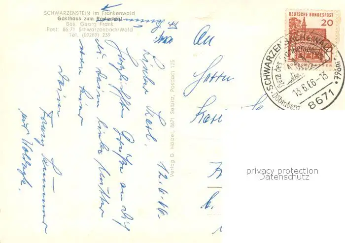 Schwarzenstein_Wald Gasthaus zum Rodachtal im Frankenwald Schwarzenstein_Wald postalisch gelaufen 1966 Erhaltung siehe scans [FriedD77] Frierer