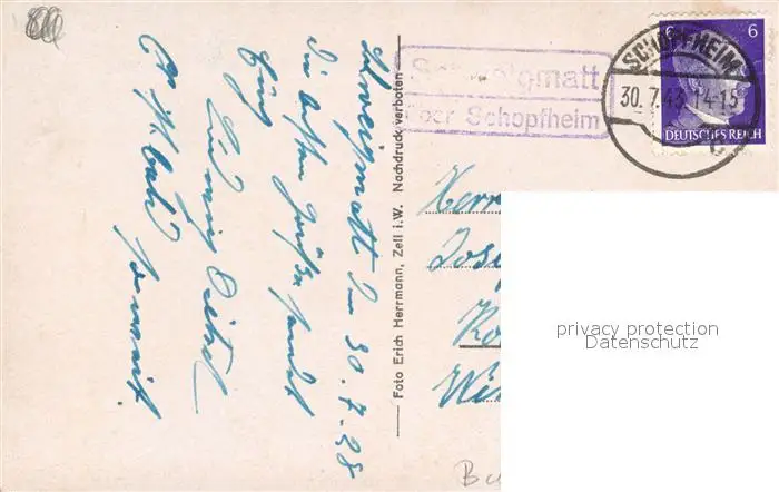 Schweigmatt Erholungsheim Schweigmatt postalisch gelaufen 1943 Erhaltung siehe scans [LiesaD40] LiesID40