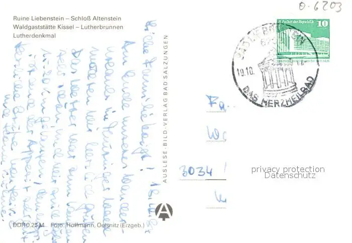 Schweina_Bad_Liebenstein Ruine Liebenstein Schloss Altenstein Waldgaststaette Kissel Lutherbrunnen Lutherdenkmal Schweina_Bad_Liebenstein postalisch gelaufen nach 1965 Erhaltung siehe scans [WerneD78] WernPID7