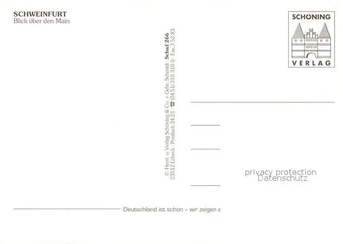 Schweinfurt Blick ueber den Main Teilansicht mit Kirche Wappen Schweinfurt postalisch nicht gelaufen nach 1965 Erhaltung siehe scans [FriedD77] Frierer