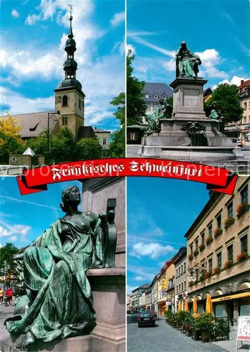 AK / Ansichtskarte Schweinfurt Kirche Marktplatz Rueckert Denkmal Haeuserpartie Innenstadt Skulptur Schweinfurt