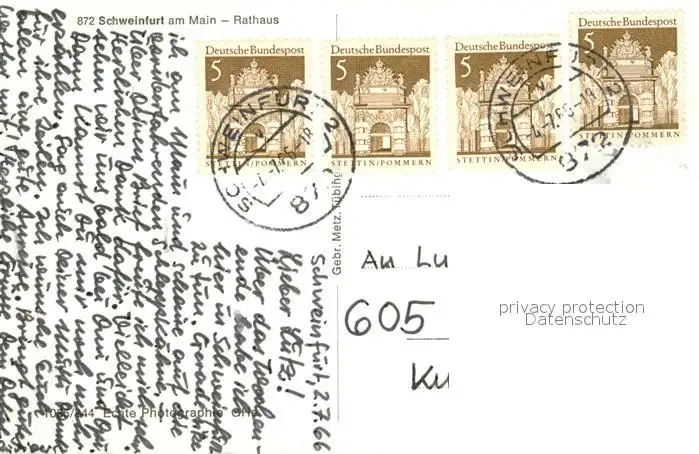 Schweinfurt Rathaus Schweinfurt postalisch gelaufen 1966 Erhaltung siehe scans [FriedD77] Frierer