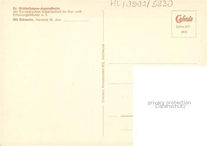 Schwelm Dr Middelhauve Jugendheim Freibad Schwelm postalisch nicht gelaufen 1966 Erhaltung siehe scans [FriedD77] Frierer