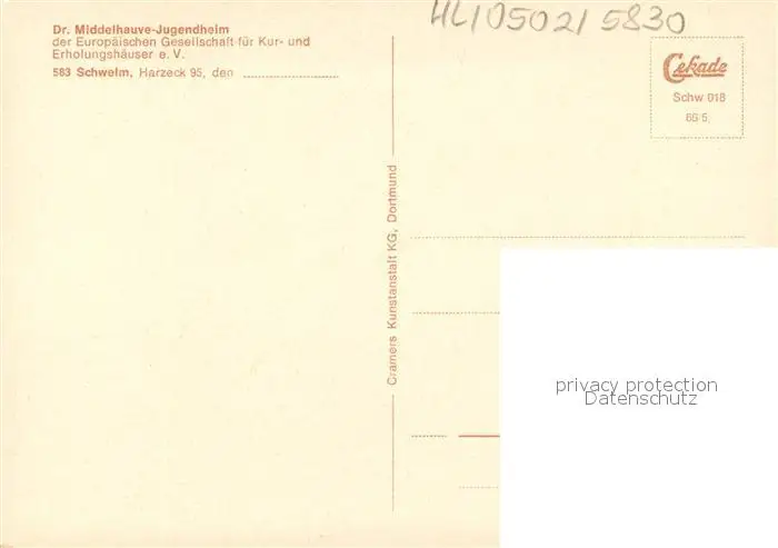 Schwelm Dr Middelhauve Jugendheim Freibad Schwelm postalisch nicht gelaufen 1965 Erhaltung siehe scans [FriedD77] Frierer